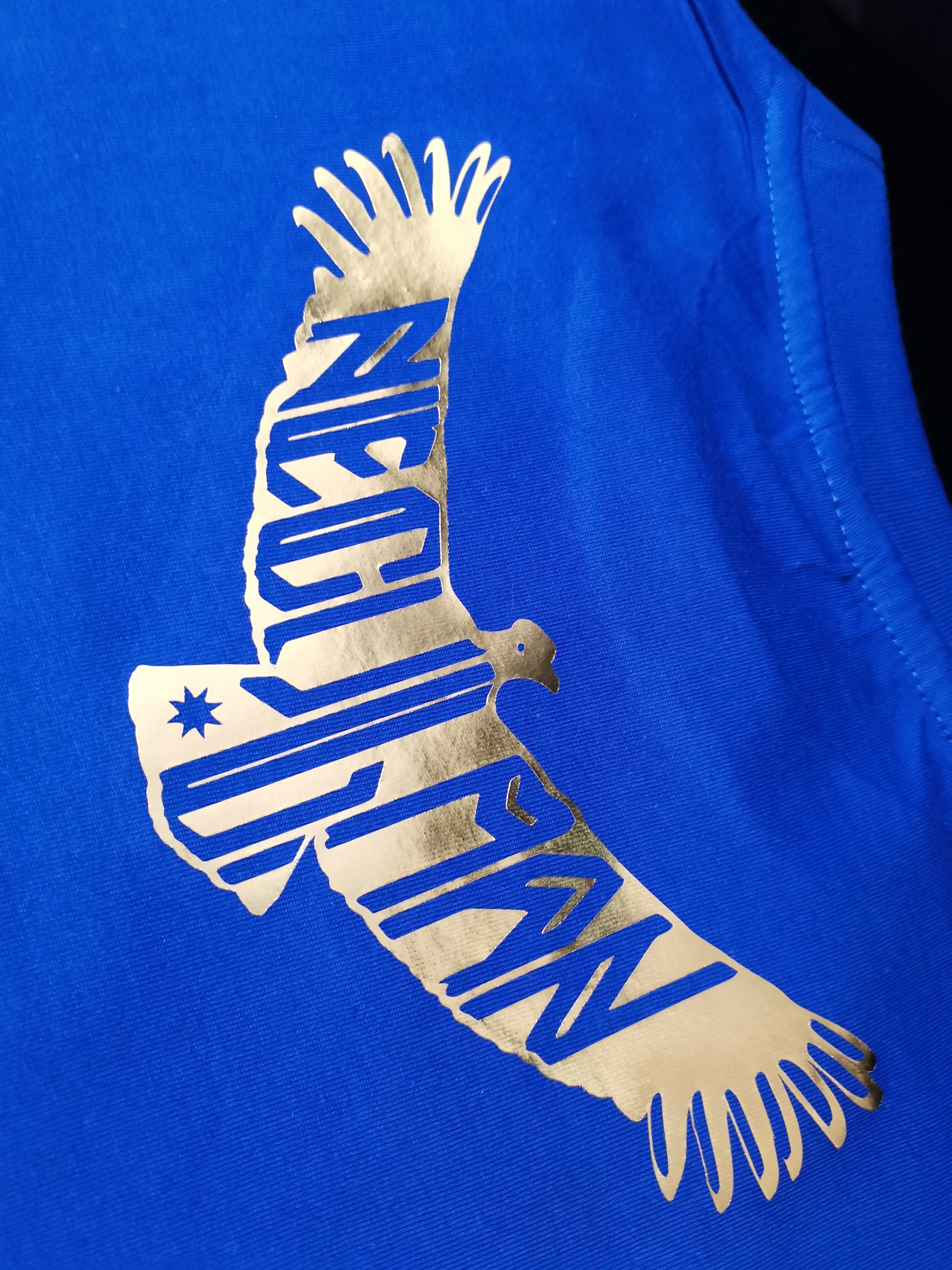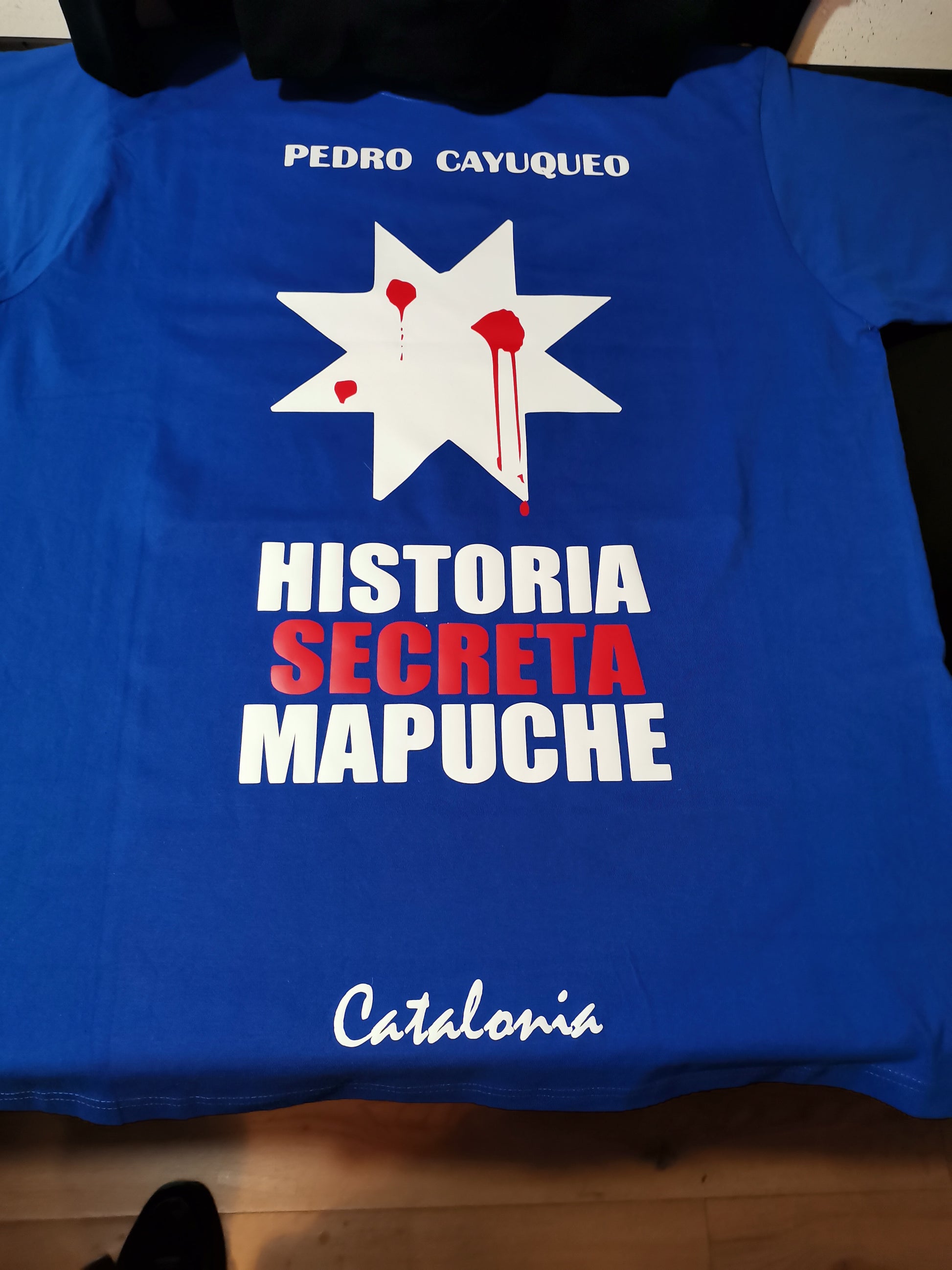 Polera manga corta 100% de algodón, con diseño frontal del la "La Historia secreta Mapuche"  y Cóndor Neculman dorado en la parte de atrás en el cuello.. Disponible en todas las tallas y colores.