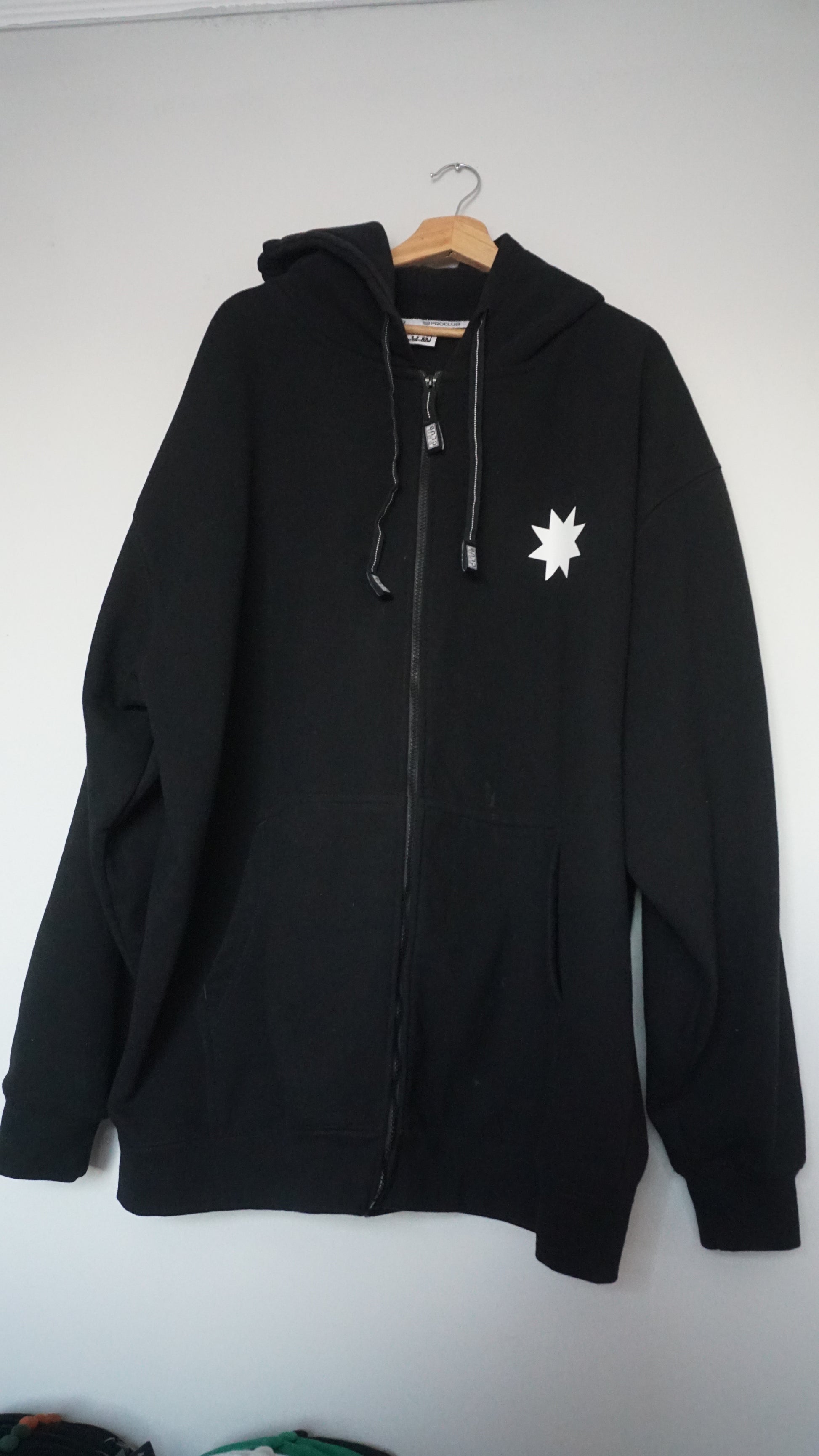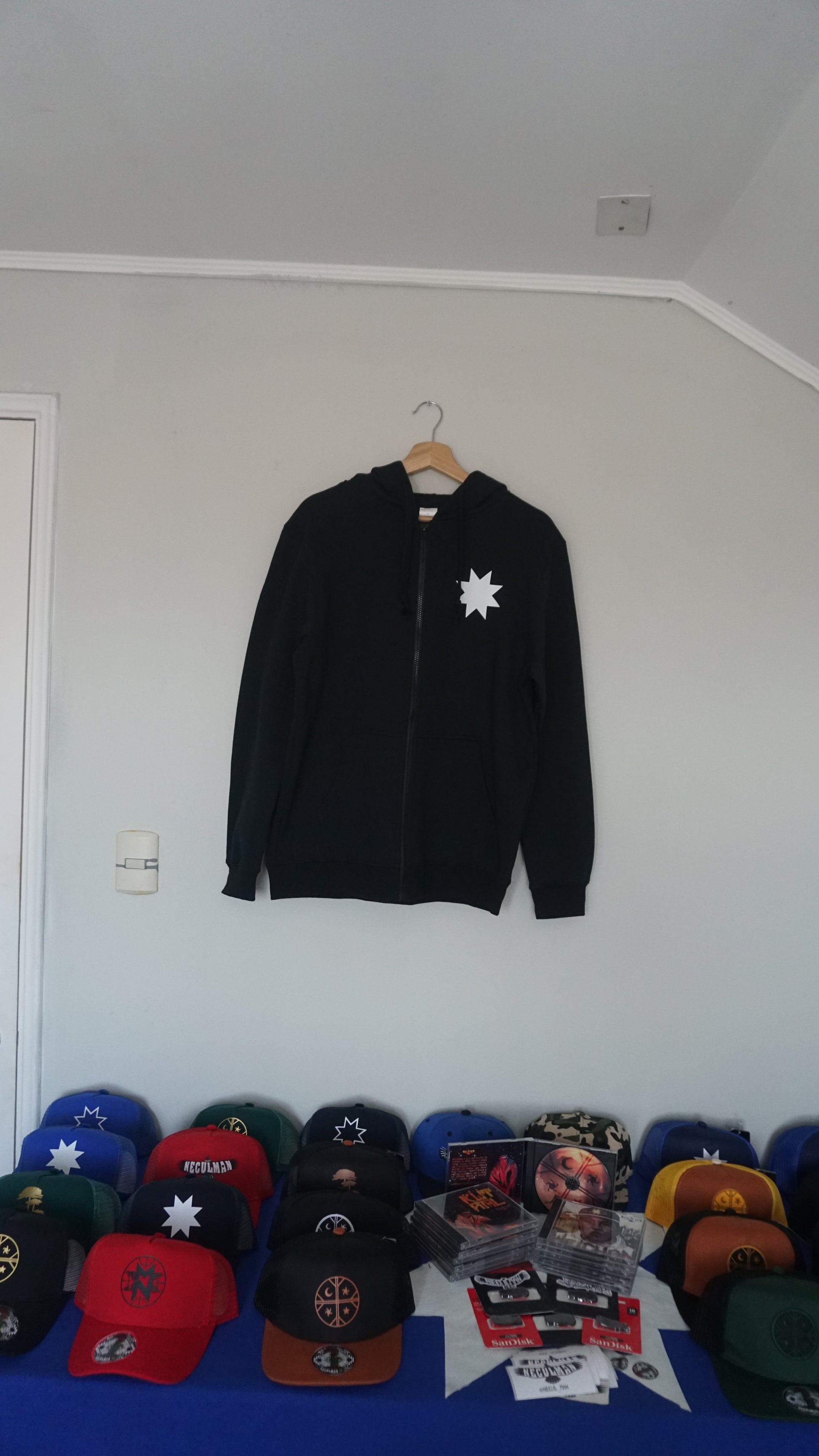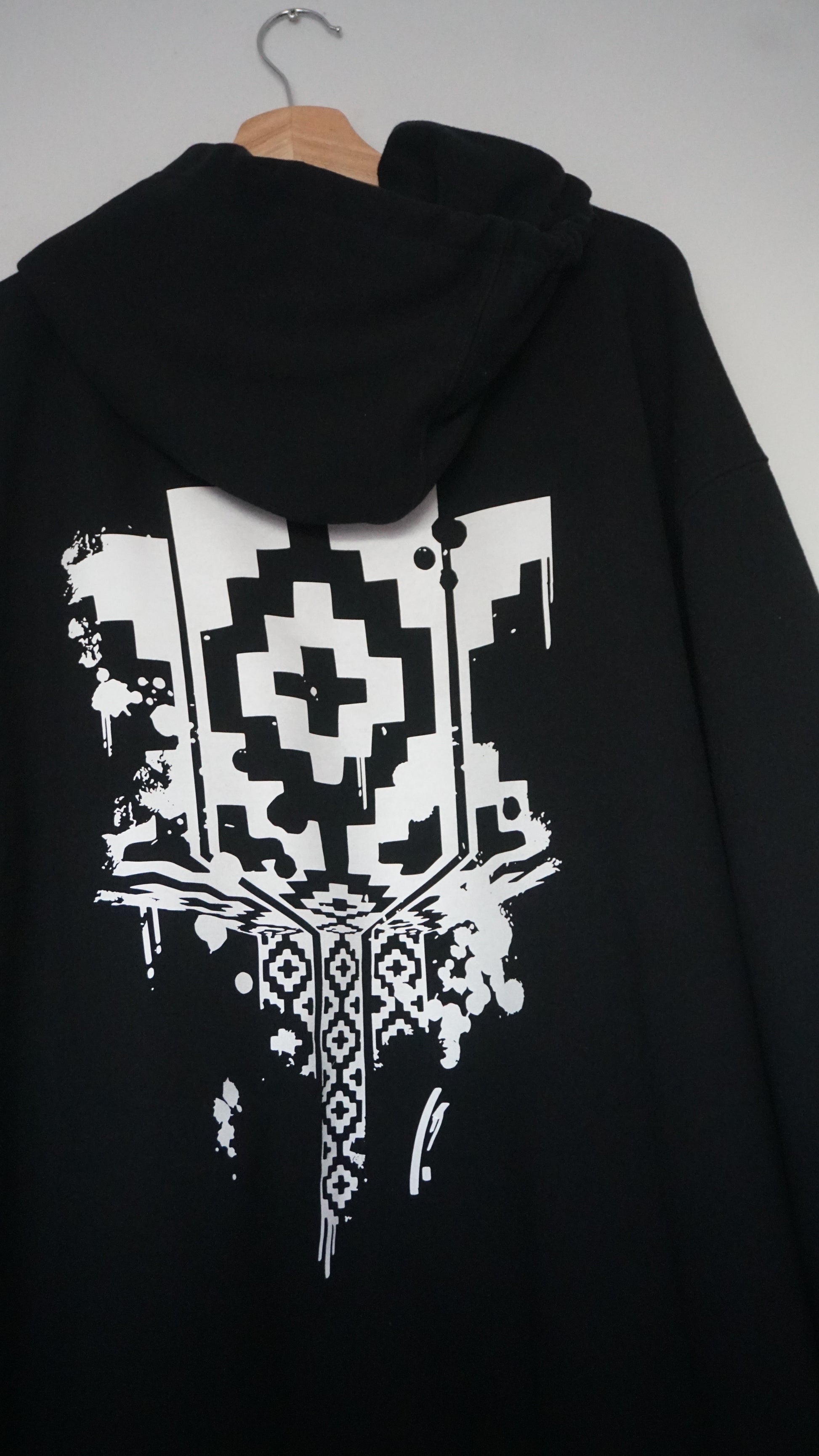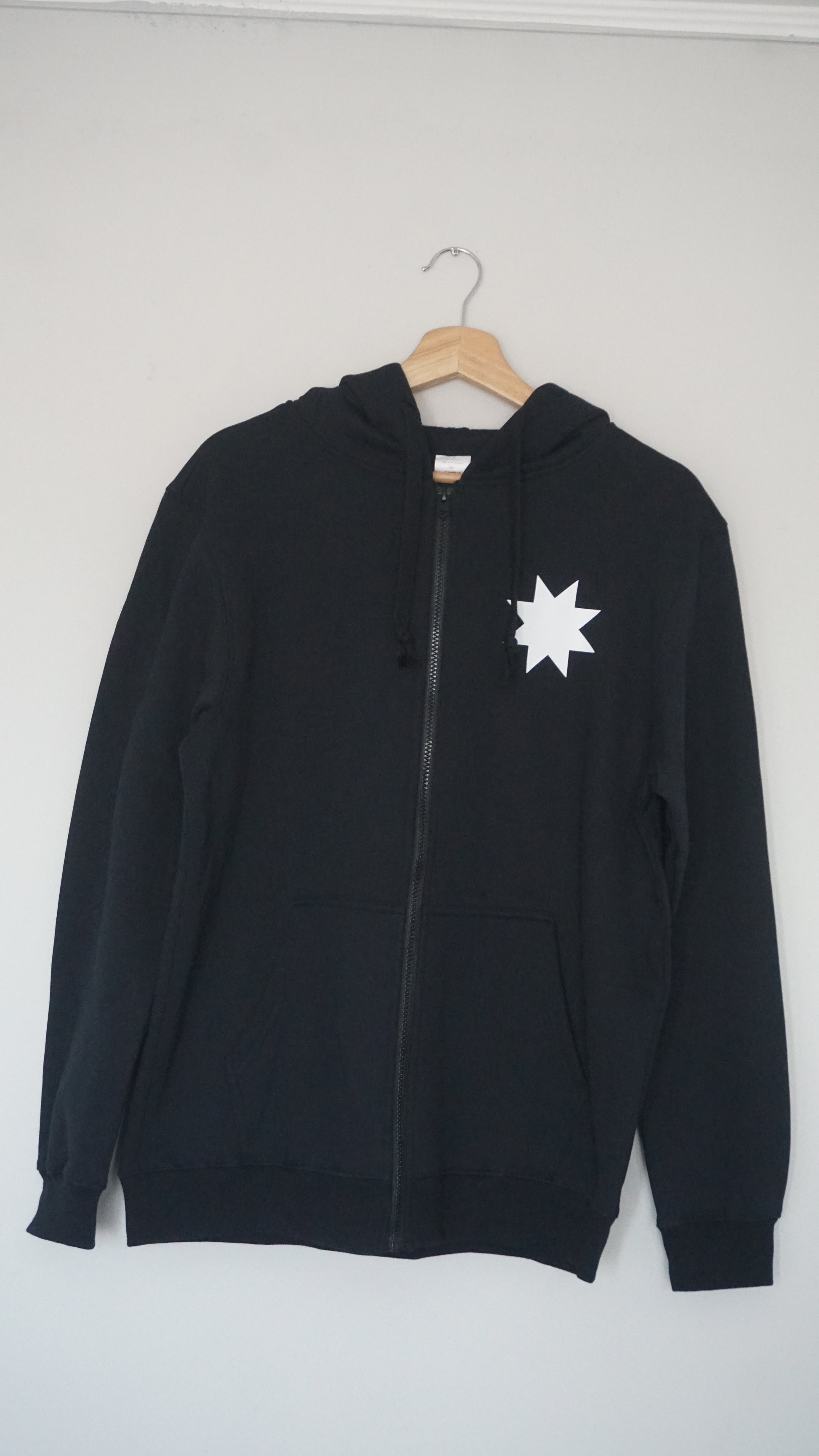 Poleron 100% de algodón con cierre y capuchón, estampado en vinilo con diseño de estrella del Lucero "Weñelfe", estampada en la parte izquierda y estampado de chacana Andina en la parte de atrás. Disponible en todas las tallas y en colores como el Negro, Rojo, Azul, entre otros.