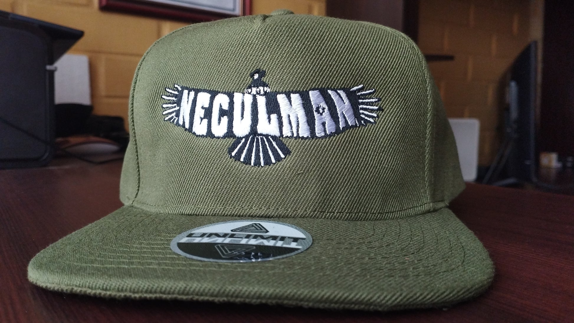 Snapback de bicera plana 100% algodón, con bordado de "Cóndor Neculman" a dos colores en la parte frontal y estrella Weñelfe (lucero del amanecer) en la parte de atrás. Disponible en todos los colores con envío a todo Chile y Wallmapu.